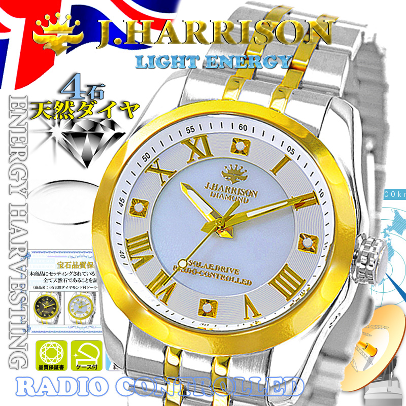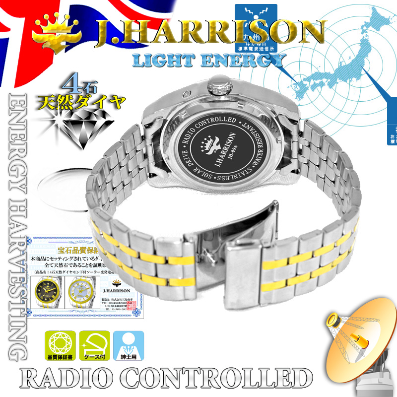J.H-096A-MGW・4石天然ダイヤモンド付・ソーラー電波時計