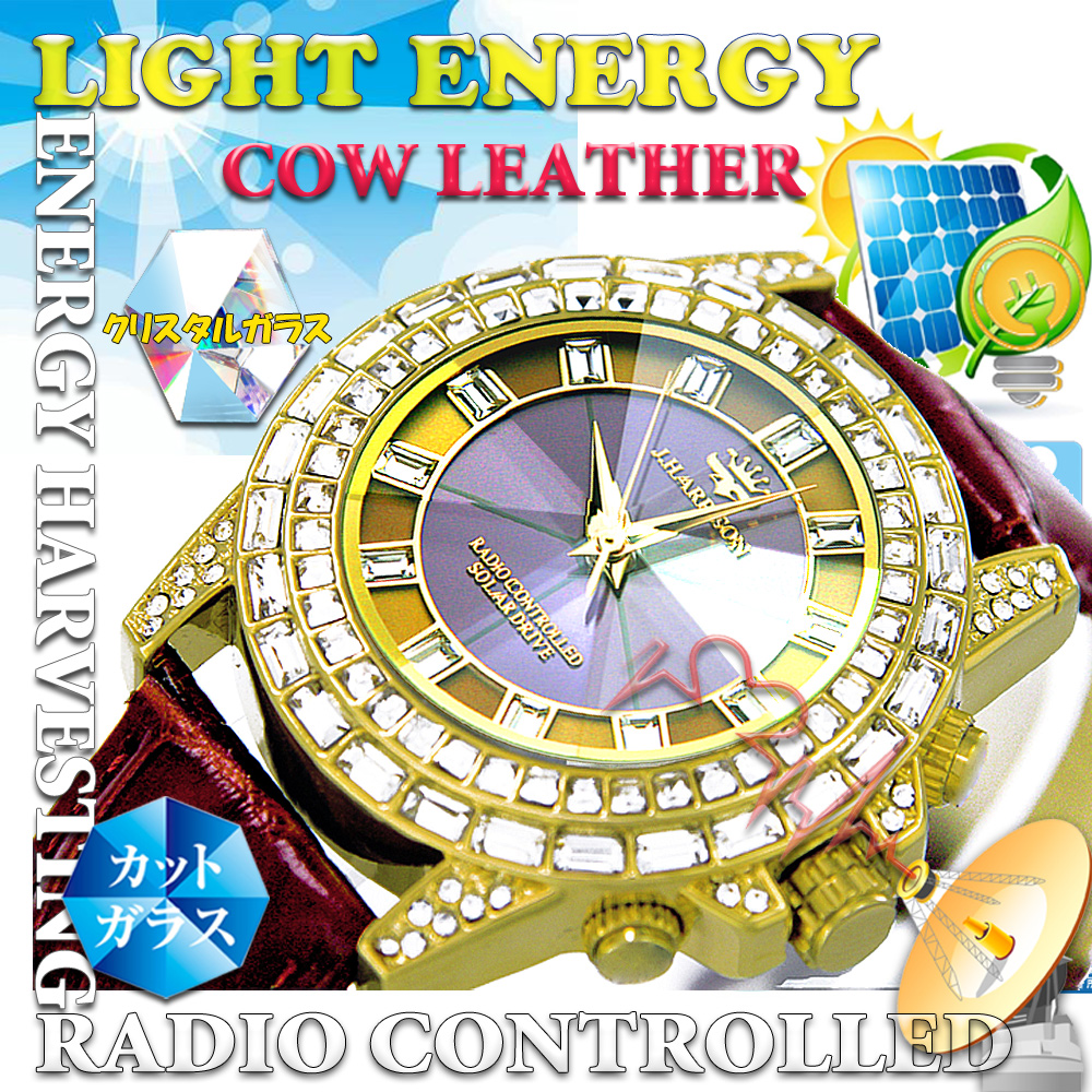 文字盤、ケースにクリスタルガラスをちりばめた豪華極まりないソーラー光発電電波時計。