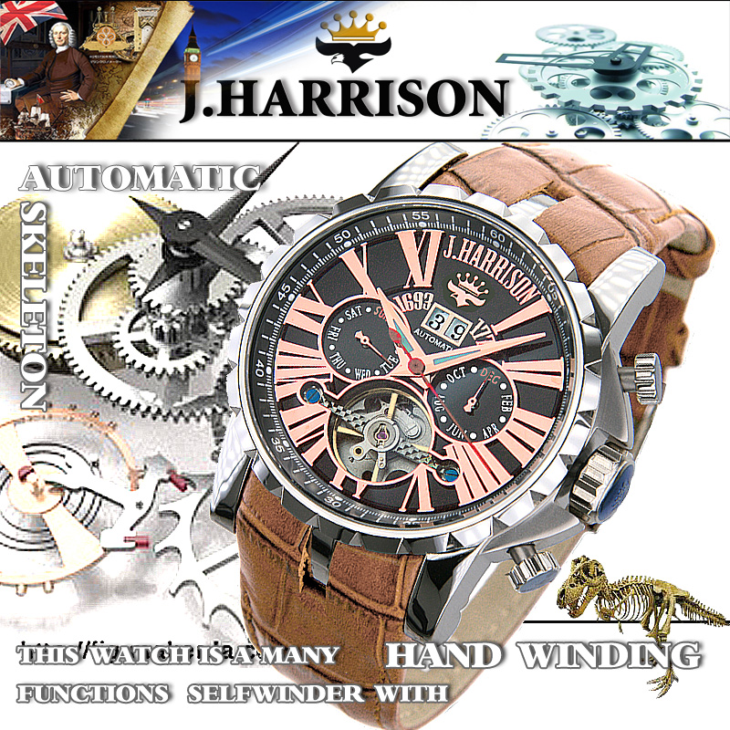 J.H-033PB・ビッグテンプ付多機能表示・自動巻&手巻き腕時計