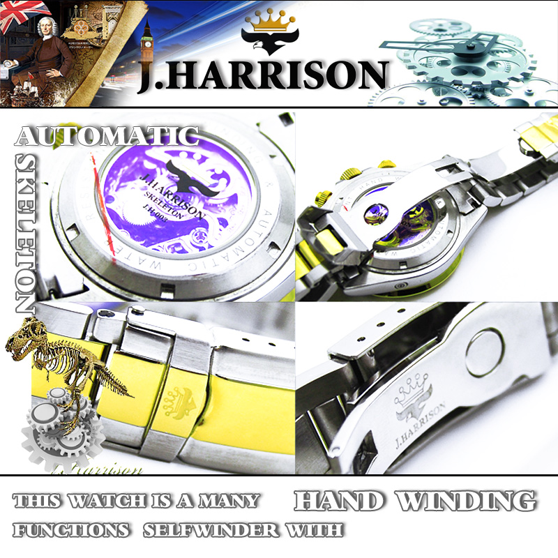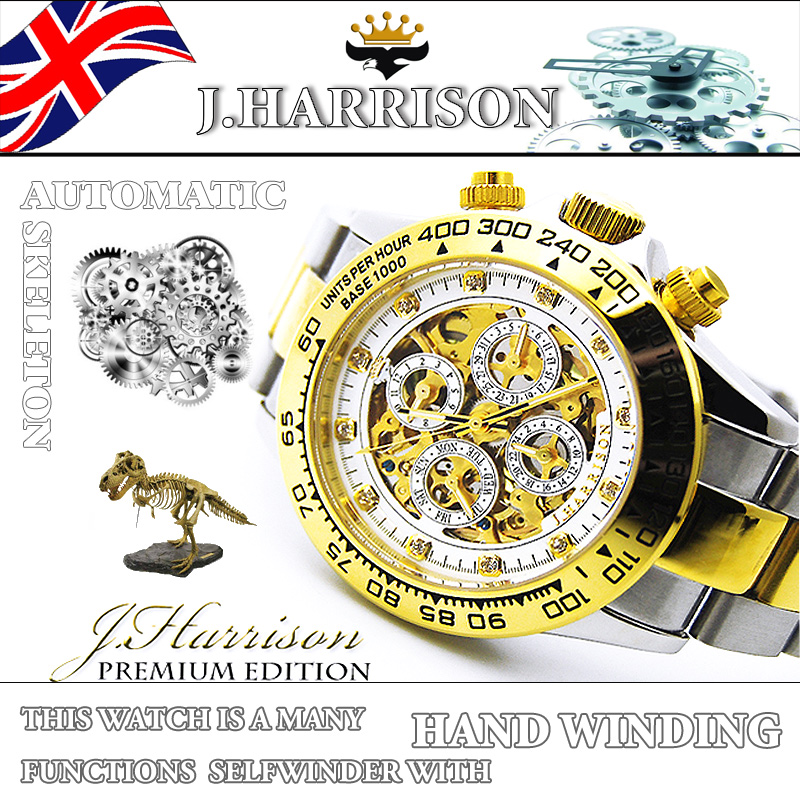 J.H-003GW・機械式・多機能両面スケルトン時計