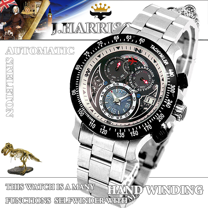 J.H-009BB・手巻&自動巻・多機能付セミスケルトン
