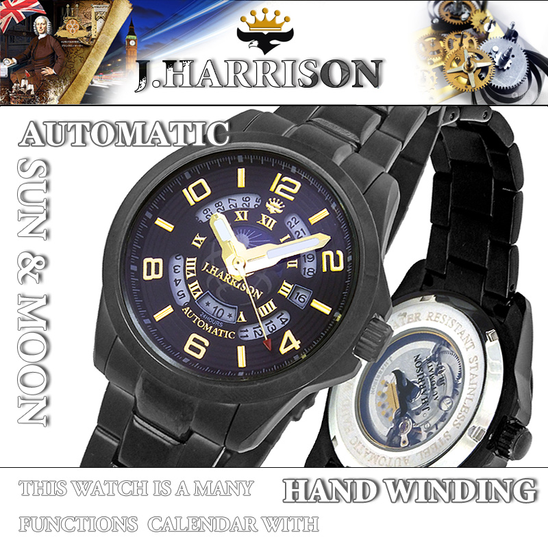 ジョンハリソン オートマチック サン&ムーン腕時計 自動巻ムーブメント仕様!オートマチック式腕時計 立体感のある3D文字盤を使用。