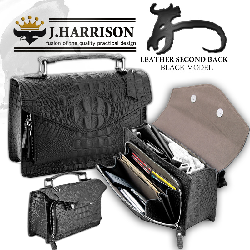 本体は牛革(床革)100%…全面に施されたクロコ型押しはしっかりと竹腑が刻まれ重厚なたたずまい。バツグンの存在感。 ●ダブルマグネットでピッタリ閉まったフラップを開けるとそこ(本体前面)には「ファスナー付きラウンド財布」が本体に付いている!ウォレット付きセカンドバッグという驚きの構造は実に便利で機能的。しかもウォレット自体はファスナー開閉式なので、うっかりさんでも安心して使えます。 ●本体の内部スペースはマチ9㎝のカッチリ構造で小物がたっぷり収納できる他、フリーポケットとペンホルダー付でスマホもしっかりホールド! ●前面ウォレット部はフリーポケット×4・カードホルダー×6で現金やカード類は勿論、レシートやクーポンなどもサッと収納できる。●フタを開けるだけで財布としても使える「目からウロコ」の超便利セカンドバック。